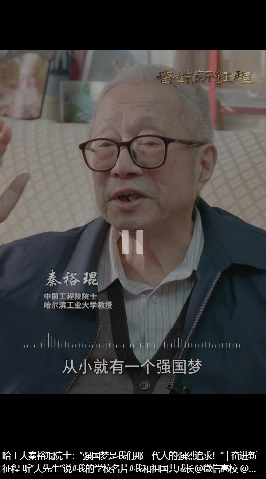 哈工大新媒体微信视频号报道秦裕琨院士的强国梦